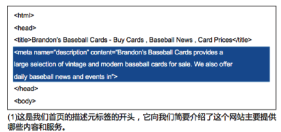 請注意避免 : 與網(wǎng)頁實際內(nèi)容不相符的描述元標(biāo)簽; 過于寬泛的描述 , 比如“這是一個網(wǎng)頁”或“關(guān)于棒球卡的網(wǎng)頁”等 ;在描述部分堆砌關(guān)鍵詞 ;把網(wǎng)頁的所有內(nèi)容都復(fù)制到描述元標(biāo)簽中